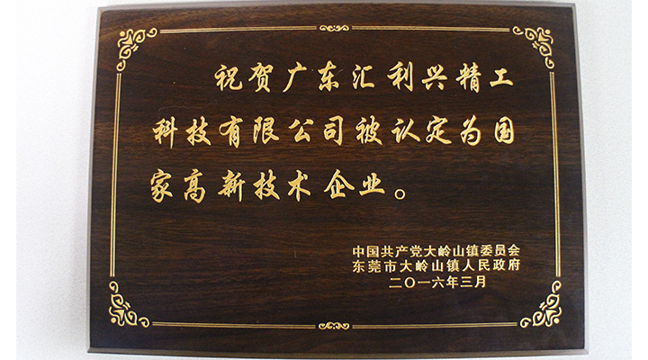 廣東匯利興精工科技有限公司被認定為國家高新技術(shù)企業(yè)